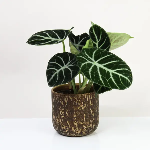 Alocasia Ninja is a compact and striking aroid known for its deep green, almost black velvety leaves highlighted with bright silvery veins. With its dwarf size, elegant foliage, and dramatic texture, it is a favourite among indoor plant lovers who want a bold but manageable statement plant. Though smaller than many other Alocasia varieties, the Ninja still has the typical Alocasia personality—beautiful, but slightly demanding. With proper care, it rewards you with lush growth and healthy, dark foliage year-round.