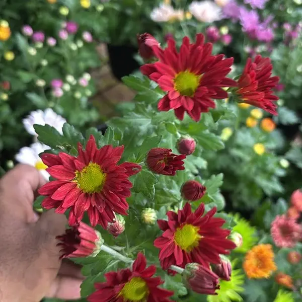 The Chrysanthemum Red (Jamanthi), often known as Jamanthi or Shevanti in India, is a popular and relatively easy-to-care-for flowering plant. The care for the red variety is the same as for other colors of the Indian Chrysanthemum (Chrysanthemum indicum).