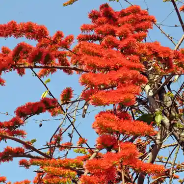 This is a spectacular creeper providing a spring spectacle of flaming crimson, flowering splendour. Flame vin is a robust, deciduous climber, sometimes a scrambling shrub. Masses of small flowers with bright red petals and long stamens occur in panicles. Racemes occur in leaf axils and on branch ends, 5-15 cm long. Flowers are red, 1.25-1.5 cm across, with 1-2 mm long stalk. Bract linear lanceolate 2-3 mm long. Sepal tube is 4-5 mm long, 5 angled alternating with calyx teeth, limb 3-4 mm long, bell-shaped, teeth triangular, 2 x 2 mm. Petals are 5, elliptic oblong, 5-6 x 2 mm. Stamens 10, protruding out. The oval leaves are 1.3-6 cm long and 1.3-5 cm wide. Scarlet Comb is a native of Madagascar and Mauritius, cultivated in the plains of India for its beautiful flowers.