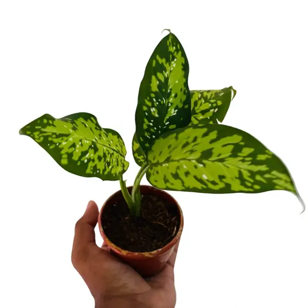 The Dieffenbachia Cheetah, also known as the Dumb Cane or Leopard Lily, is a popular houseplant with large leaves and a striking pattern of white variegations and bright green edges: