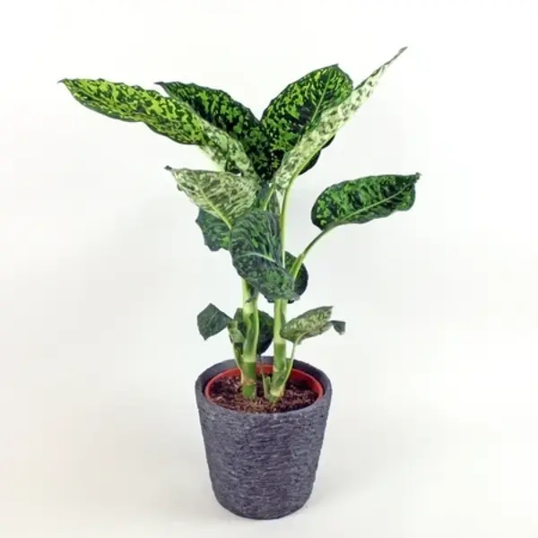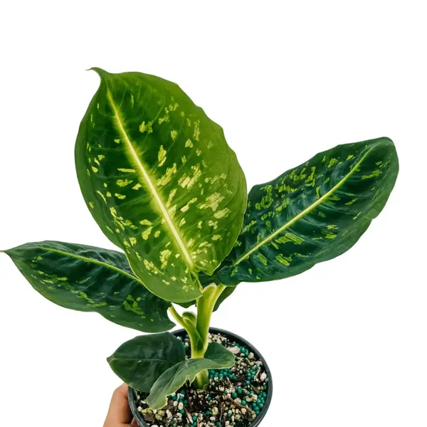 The Dieffenbachia Reflector is a popular and striking houseplant known for its dark green leaves dappled with reflective, lighter green, or chartreuse spots. Like all Dieffenbachia, it is commonly called “dumb cane”.