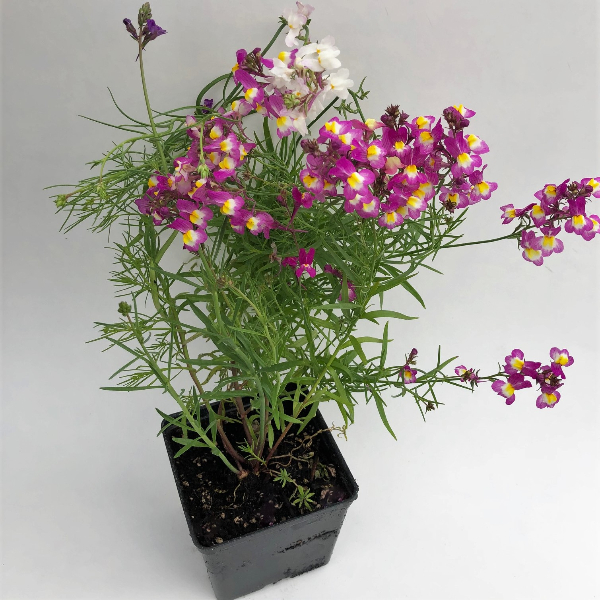 Linaria maroccana, commonly known as Moroccan Toadflax or Annual Toadflax, is an excellent, low-maintenance flowering annual. It’s cherished for its miniature, snapdragon-like flowers and is often sold as the colorful ‘Fairy Bouquet’ mix.