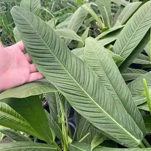 Philodendron Campii ‘Lynette’ is a rarely-offered, gorgeous self-heading Philodendron with long and narrow, ribbed leaves. The ribs and unusual texture of its foliage are sure to make every Aroid lover drool!