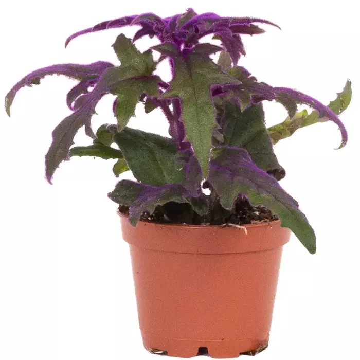 Gynura purple passion vine or velvet plant is chiefly prized for its soft hairy velvety purple leaves which is usually grown as a houseplant having purple hair on the both upper and lower surfaces of the leaves stems and flower heads younger leaves are a deeper purple than the mature leaves the leaves are 34 long with coarse toothed edges. The plant twines or trails, this plant is especially effective when kept in hanging baskets or is otherwise permitted to trail so as to exhibit to the fullest extent. The colour and beauty of its foliage is very bright. Indirect light and even some sun everyday is necessary for growth and vividly coloured foliage. Water moderately just enough to keep the soil from drying up. Apply liquid soluble fertilizer high in nitrogen to promote lush leaves. It grows easily from cuttings and should be pinched back regularly to encourage dense bushy growth. Propagation is through tip cuttings insert four to five tip cuttings.